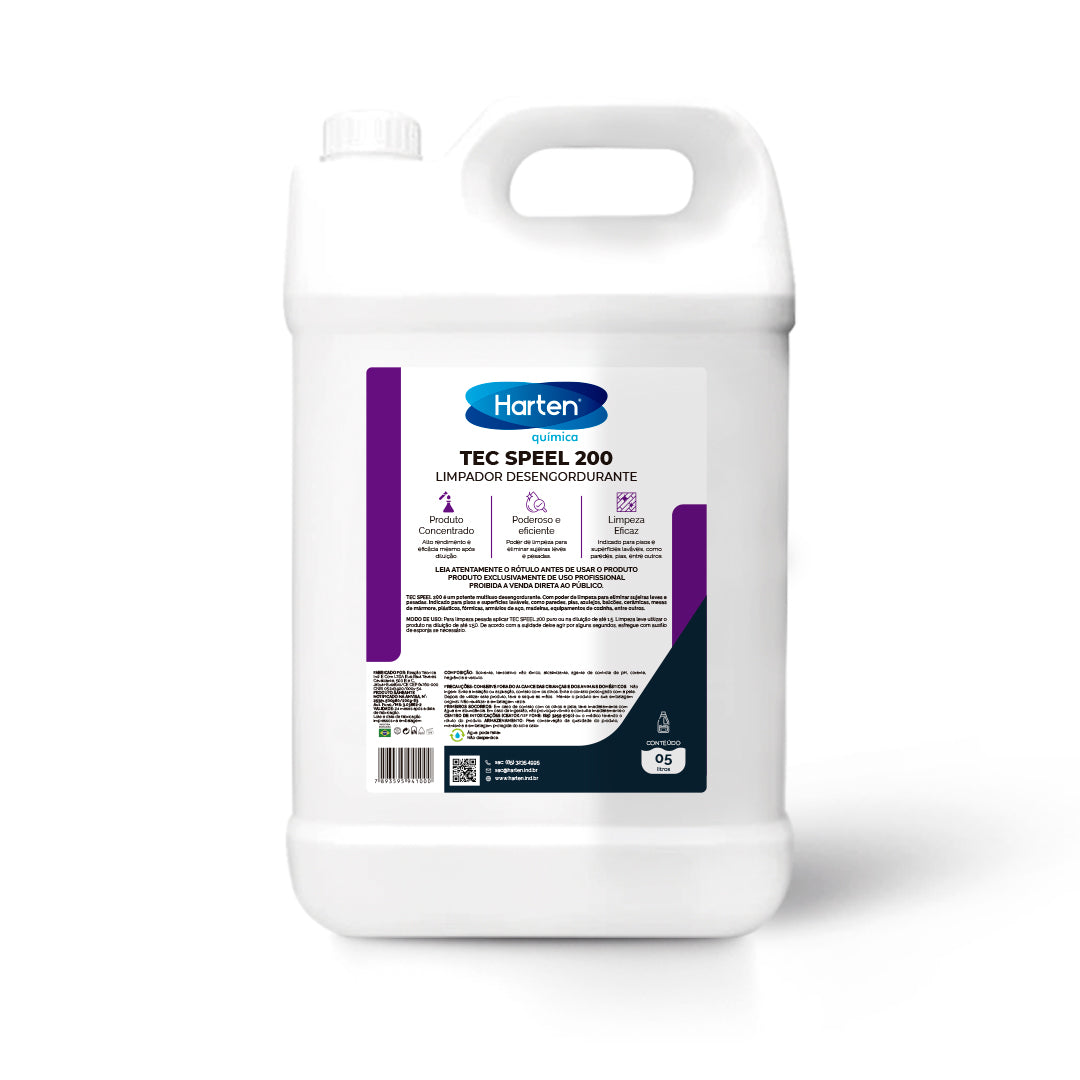 O Speel 200 da Harten Química é um desengraxante de alto desempenho, desenvolvido para remover graxas, óleos, sujeiras pesadas e resíduos incrustados com máxima eficiência. Sua fórmula avançada garante uma limpeza profunda em peças, máquinas, equipamentos e superfícies industriais, tornando-o ideal para uso em indústrias, oficinas e ambientes que exigem alto poder desengraxante.