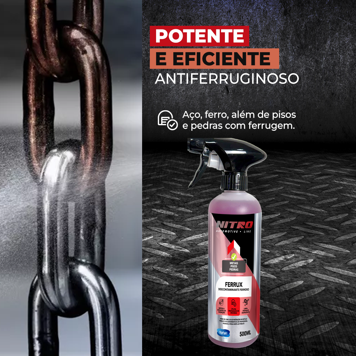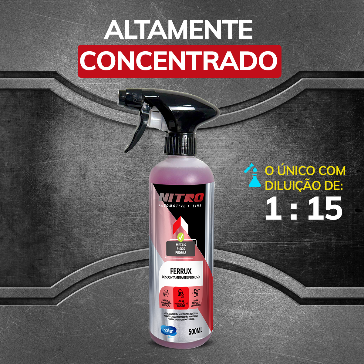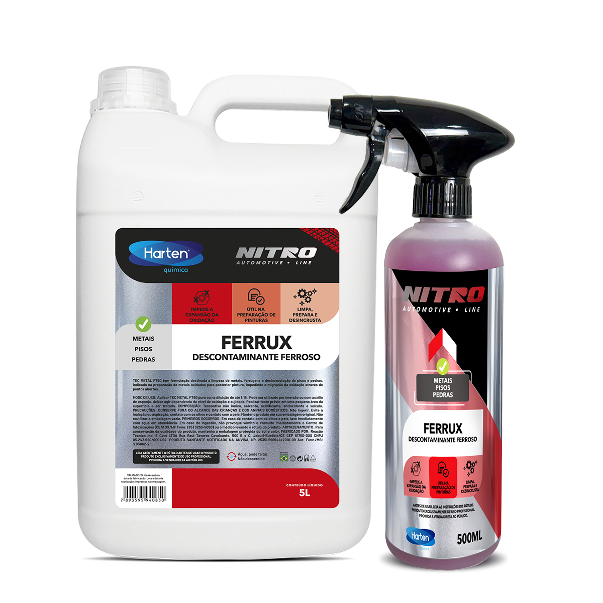 O Ferrux é um limpador antiferruginoso de alta performance, ideal para limpeza de metais, remoção de ferrugem e desincrustação de pisos e pedras. Desenvolvido para uso profissional, este produto concentrado oferece alto rendimento com diluição de até 1:15. Sua formulação exclusiva evita a migração da oxidação, garantindo máxima eficiência na preparação de superfícies metálicas para pintura ou outros tratamentos.